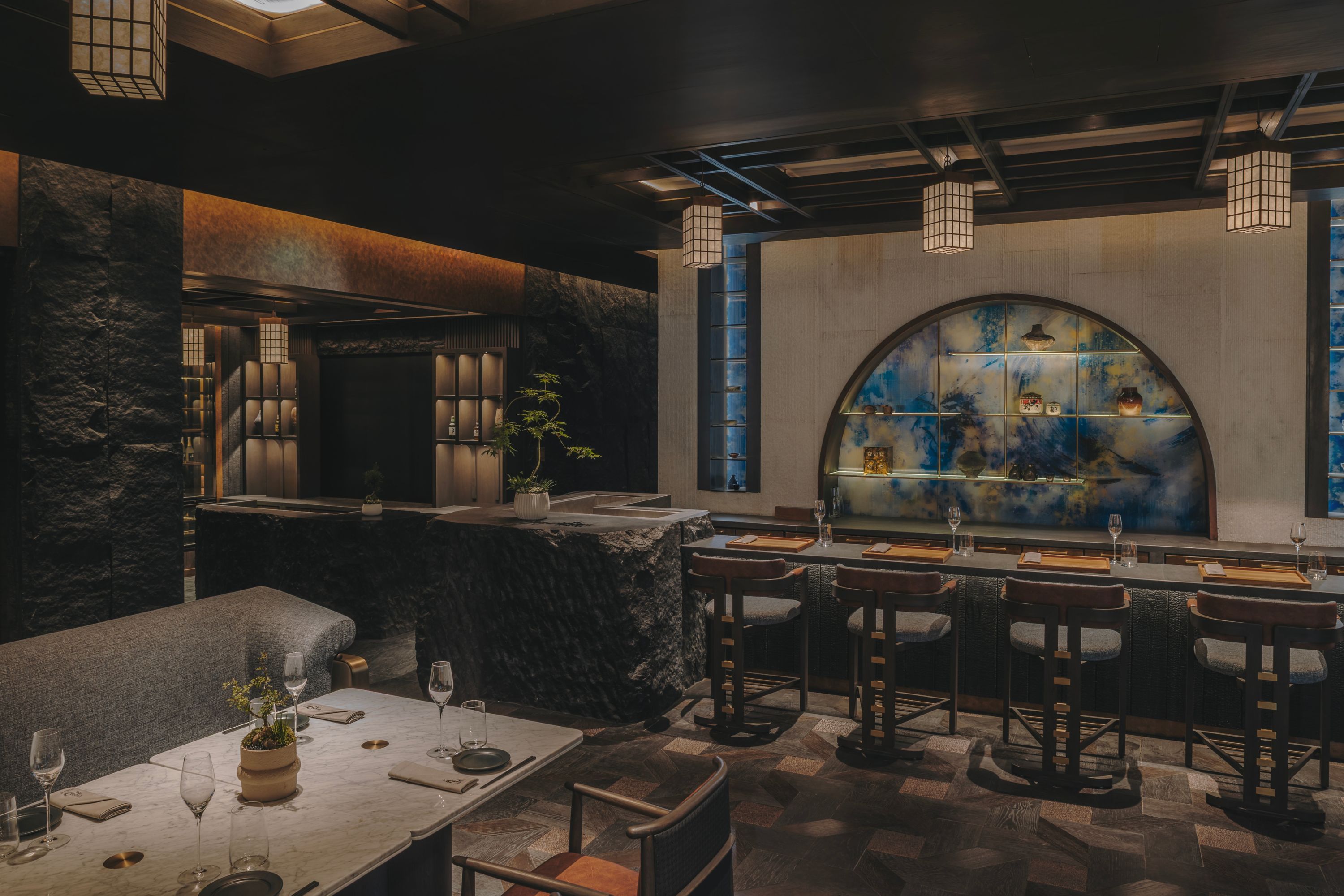 店名の HIRYU は「空を舞う龍」を意味します。3 つのオープンキッチン--おまかせ、鉄板焼き、そして特製メインディッシュで日本の料理の芸術性を表現しています。希少な日本酒、こだわりのカクテル、そして洗練されたデザインが相まって、忘れられない食体験をお届けします。